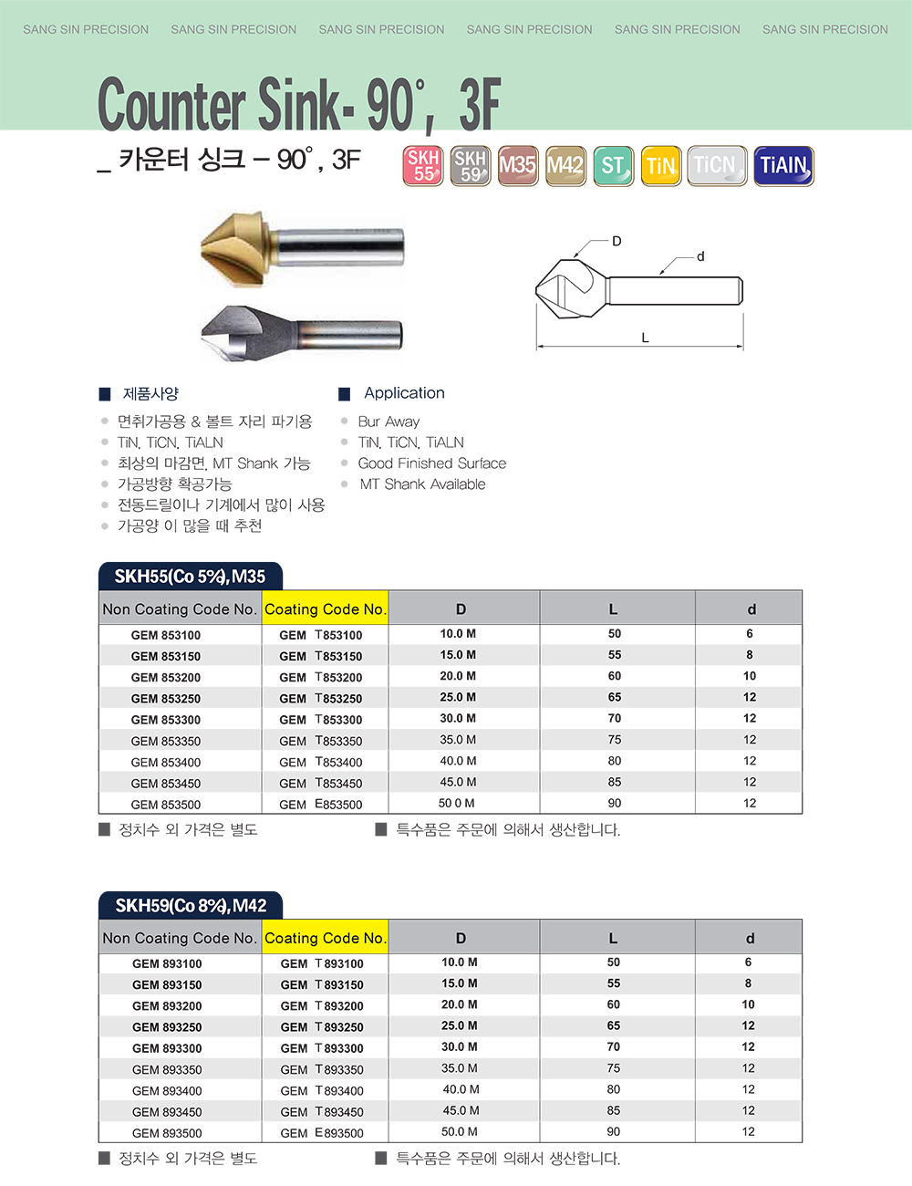 카운터 싱크-90˚, 3F