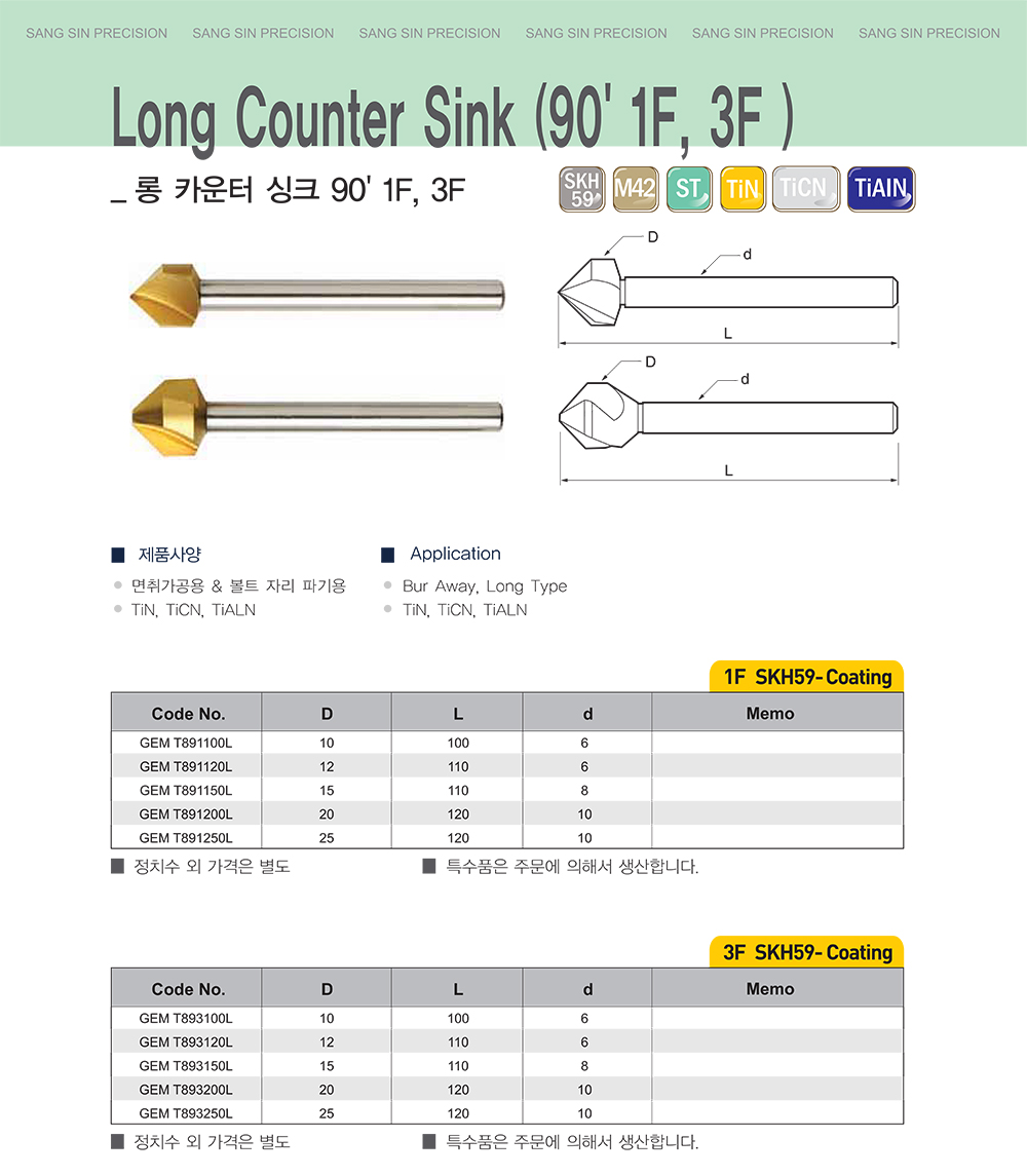 롱 카운터 싱크 90' 1F, 3F