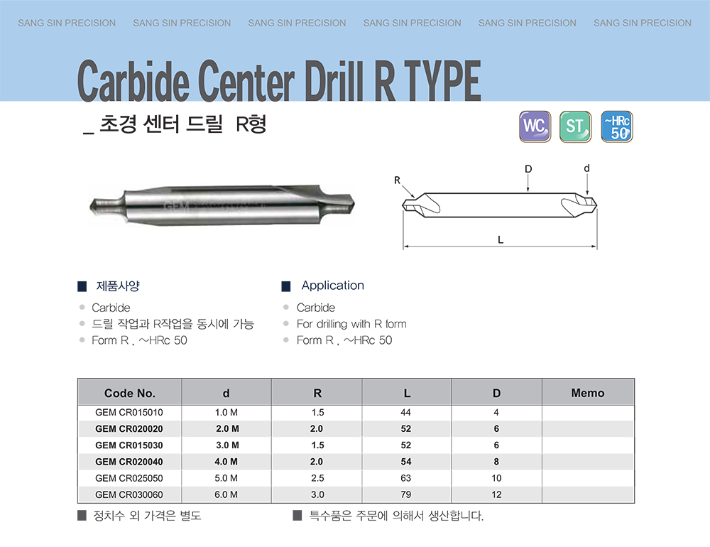 초경 센터 드릴 R형